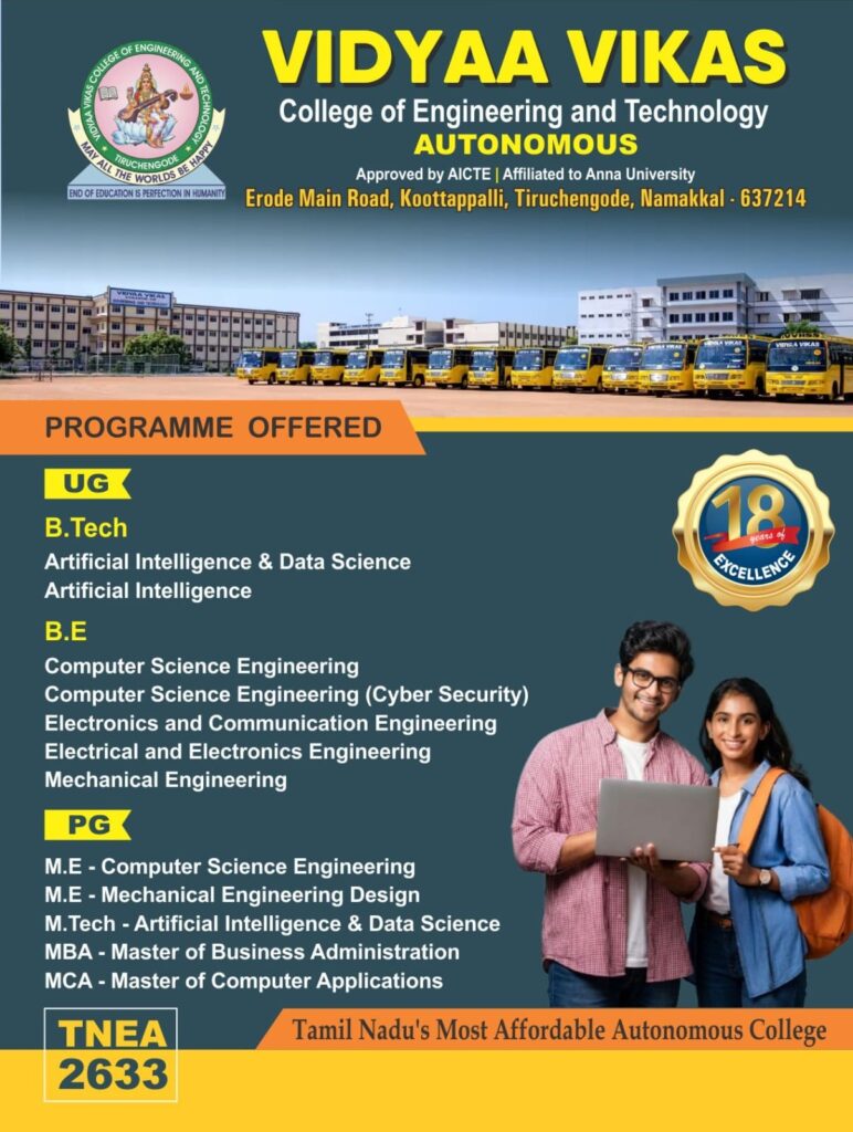 - Vidyaa Vikas College of Engineering & Technology is proud to announce that we have been accredited with NAAC B++ Grade.